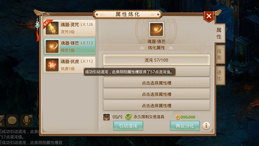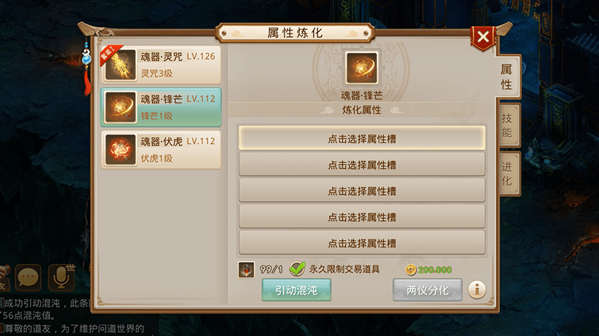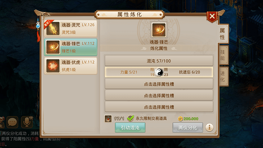 7获得混沌值后进行两仪分化,可分化出两种属性加成;