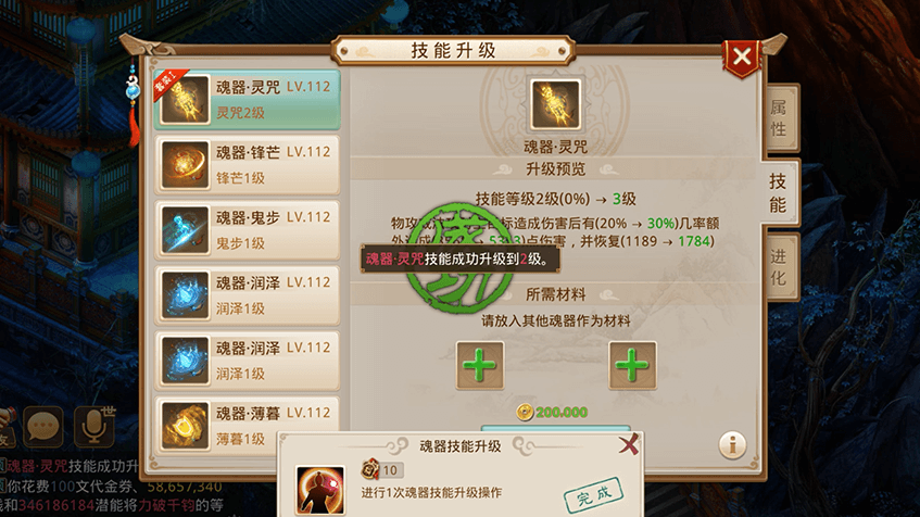 1完成地府主线任务可激活角色神魂系统,神魂可提高角色的基础属性值;