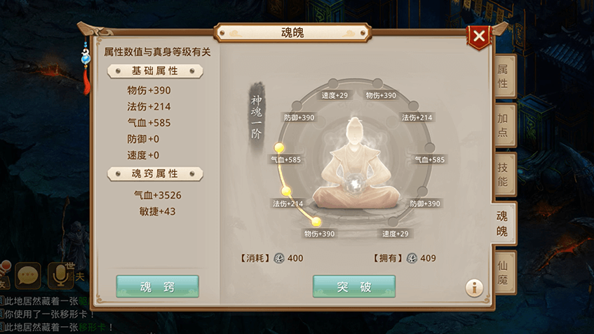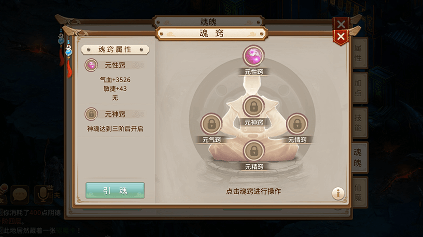 3将获得的太阴之气注入魂窍,获得属性提升;