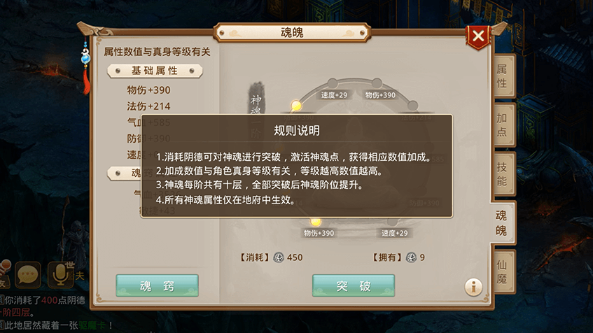 2可以通过消耗阴德来突破神魂阶数,获得相应的属性加成;