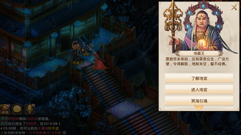 1完成地府主线任务后,可通过地藏王NPC前往地宫探险;