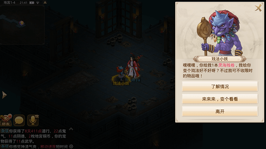 在探索过程中,还有几率偶遇地府行脚商,获得购买地府相关道具的机会。