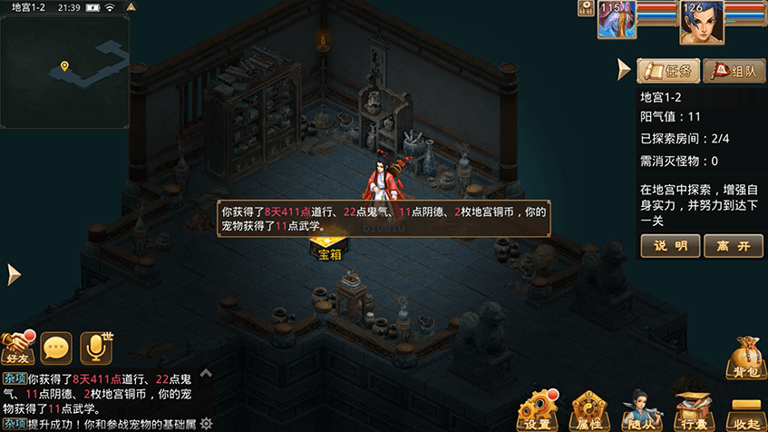 4探索地宫会获得地宫专属铜币,可在地宫中招募随从和购买部分道具;