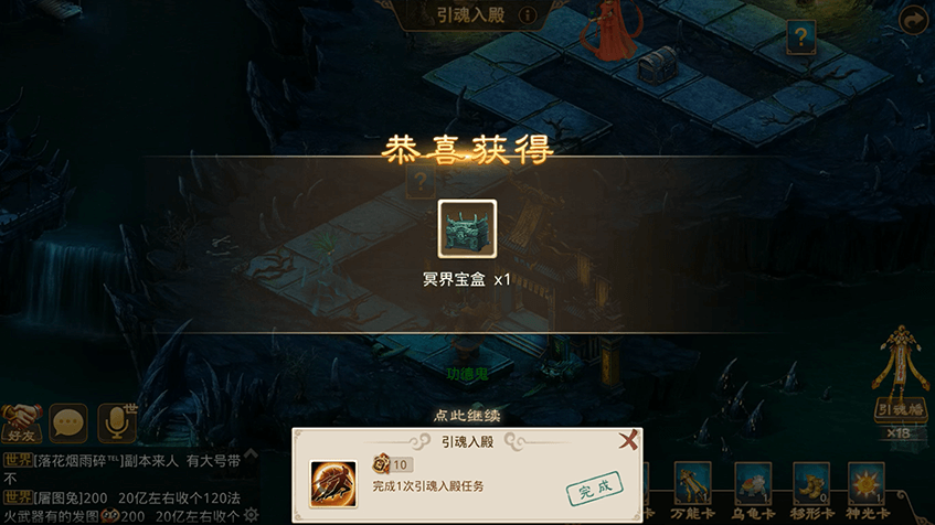 2完成指引任务可必然获得一个随机魂器,参加其他地府活动有几率获得新魂器;